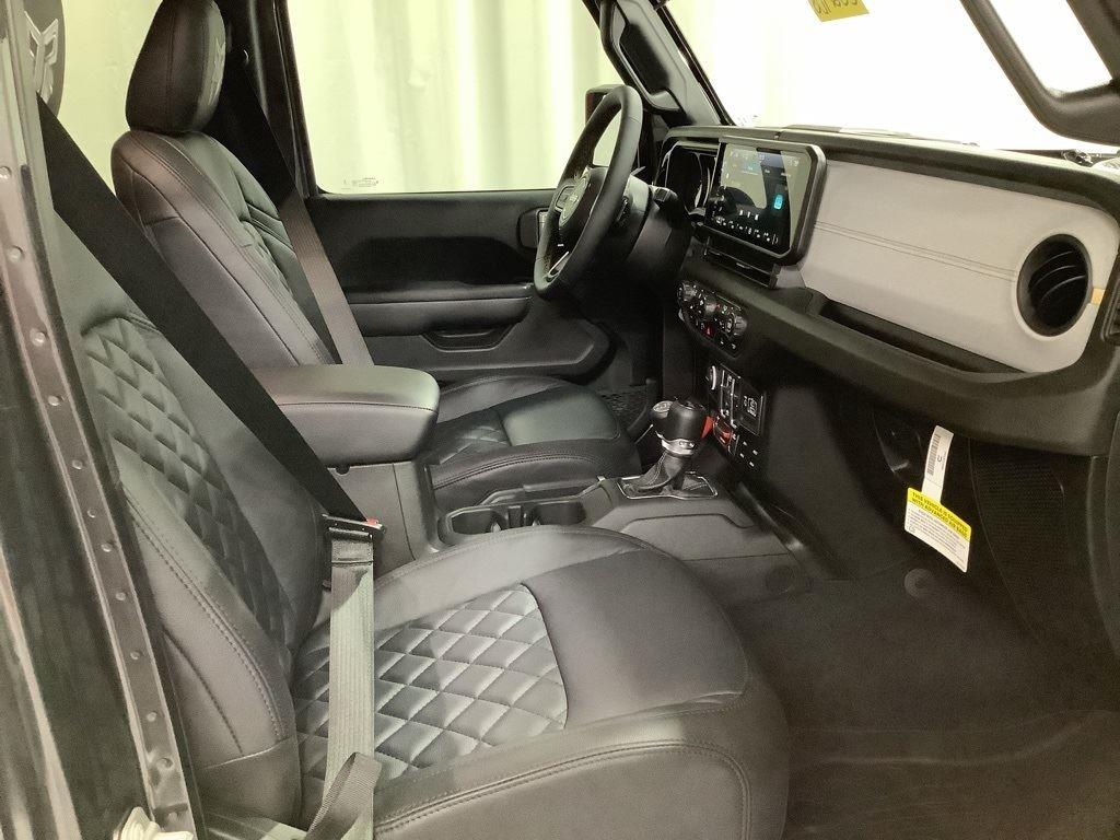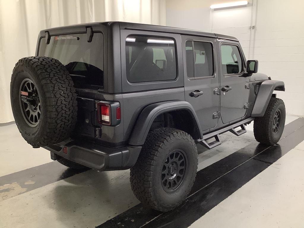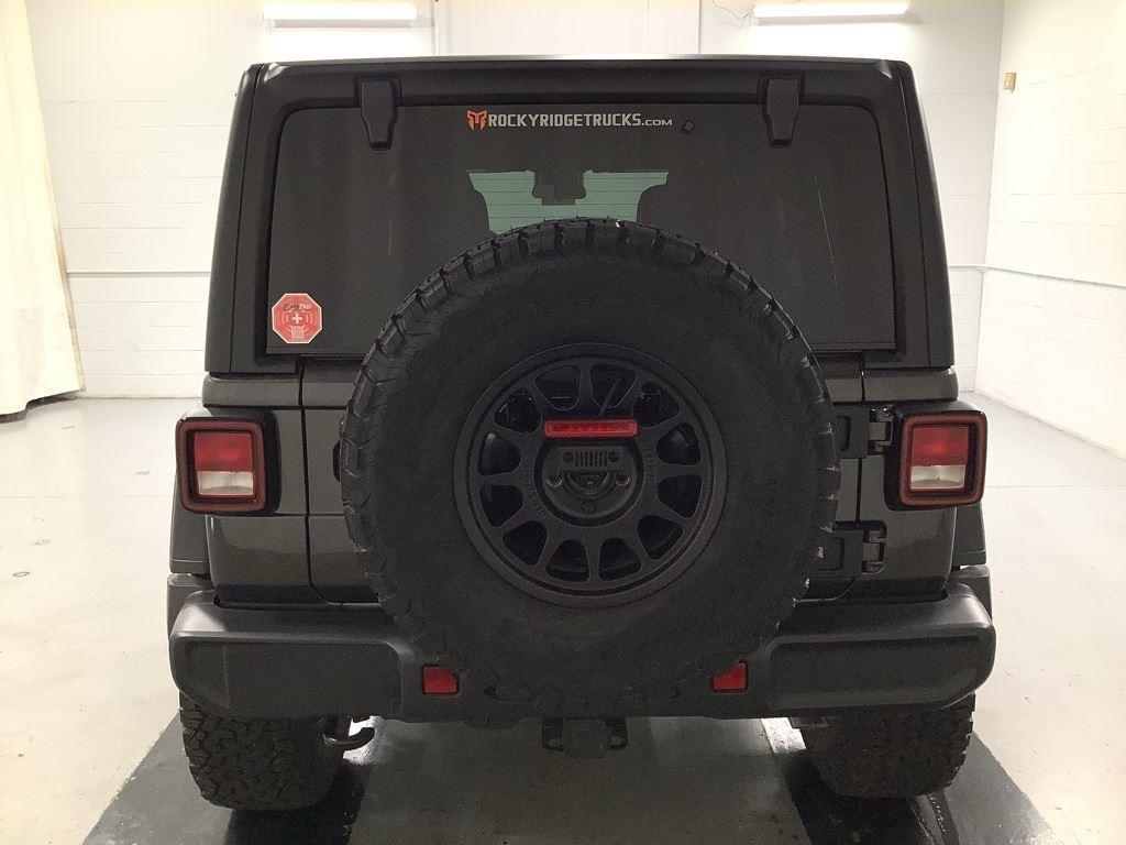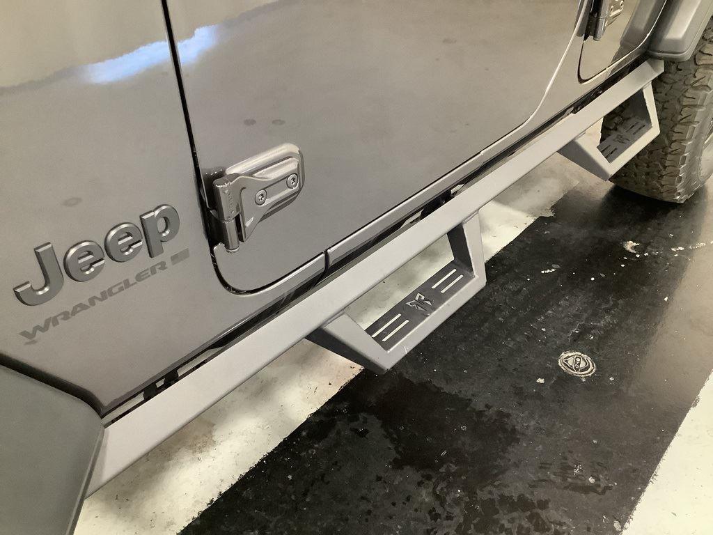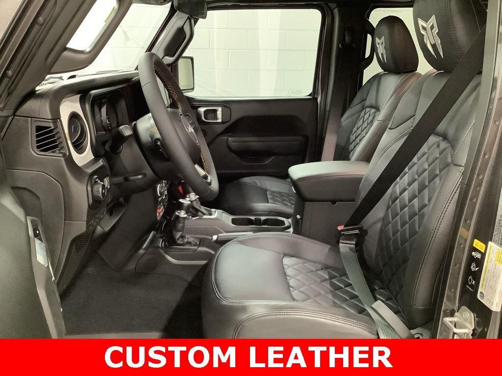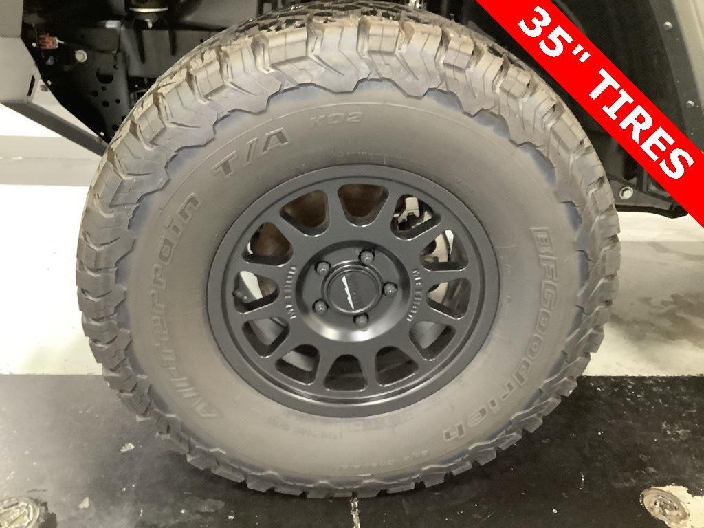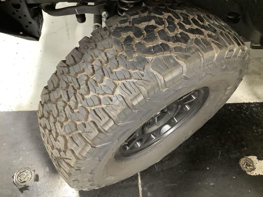 3 inch Suspension Lift, 17 inch Black Off-Road Wheels, 35 inch Premium All-Terrain Tires, Fox Adventure Shocks, Black Wheel to Wheel Side Step, Stamped Steel Hood with Vent Inserts, Rocky Ridge Stitched Headrests, Custom Stitched Leather Seat Covers, Rocky Ridge Stubby Bumper with Body Color Center Insert, 20 inch Lightbar, Rocky Ridge Exterior Badging