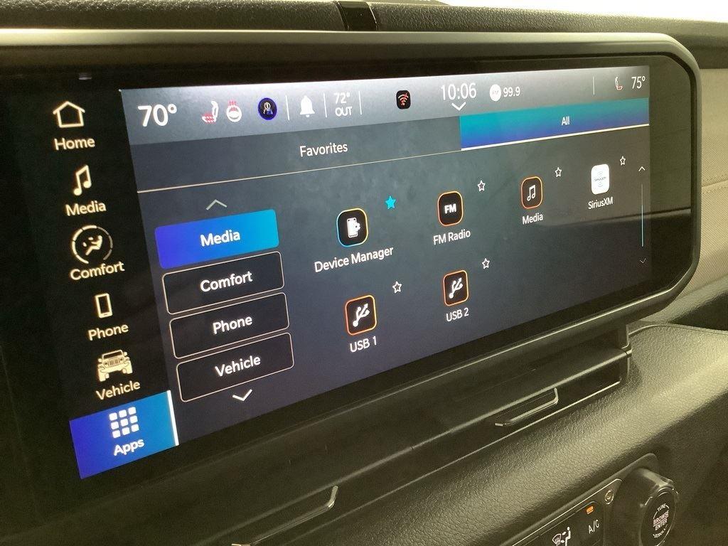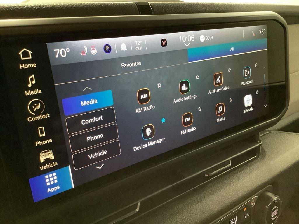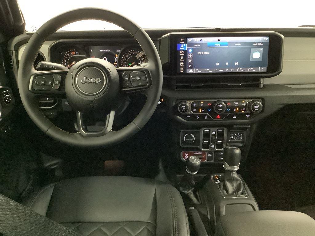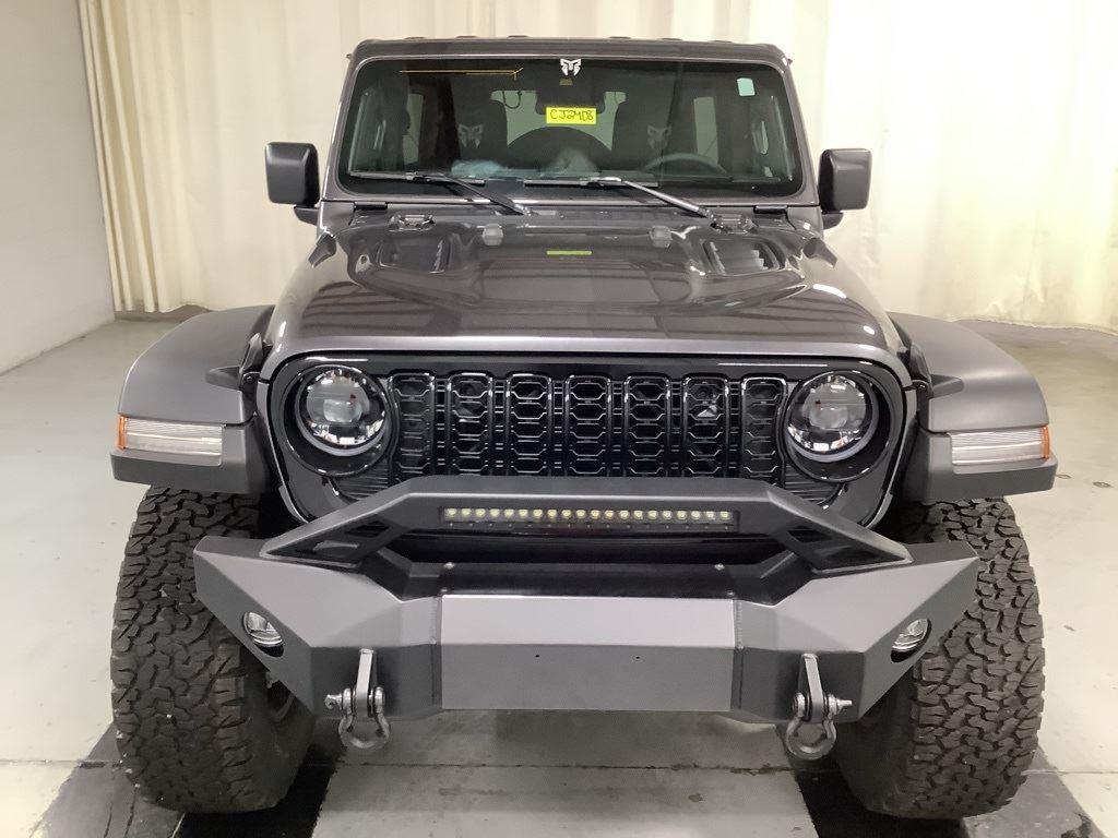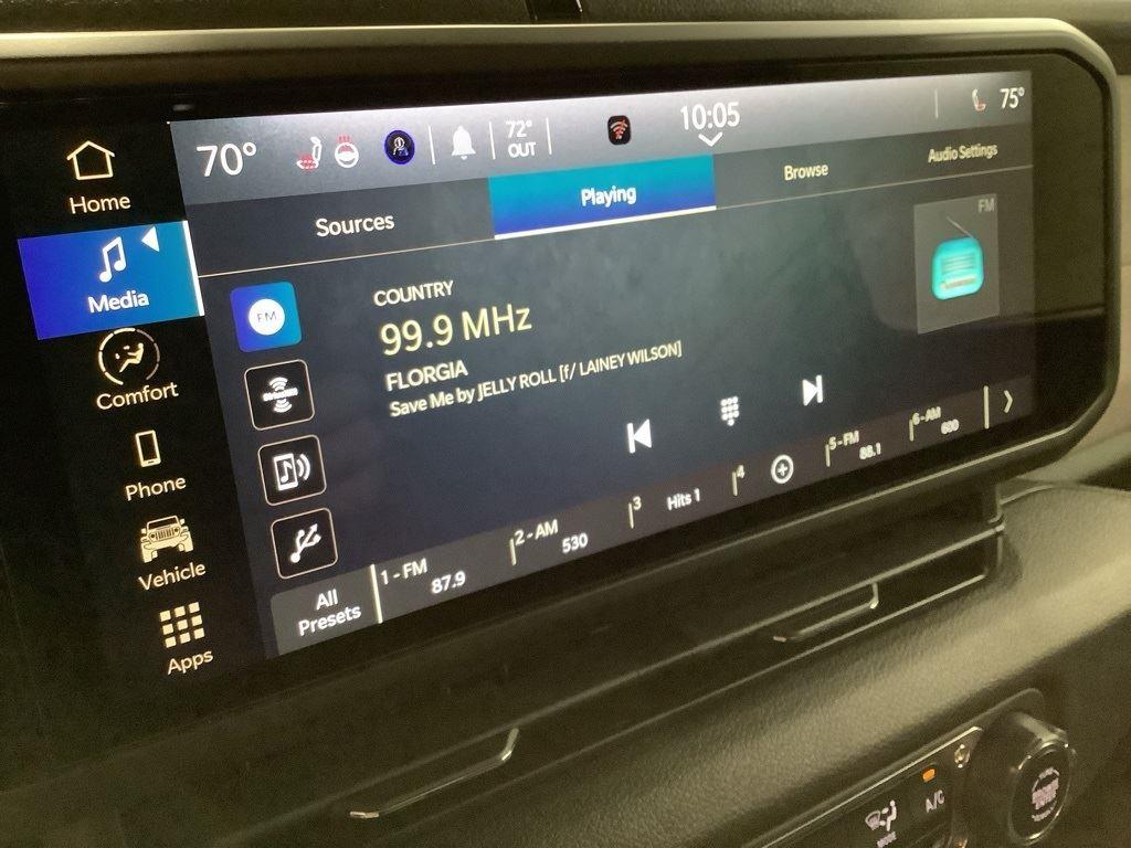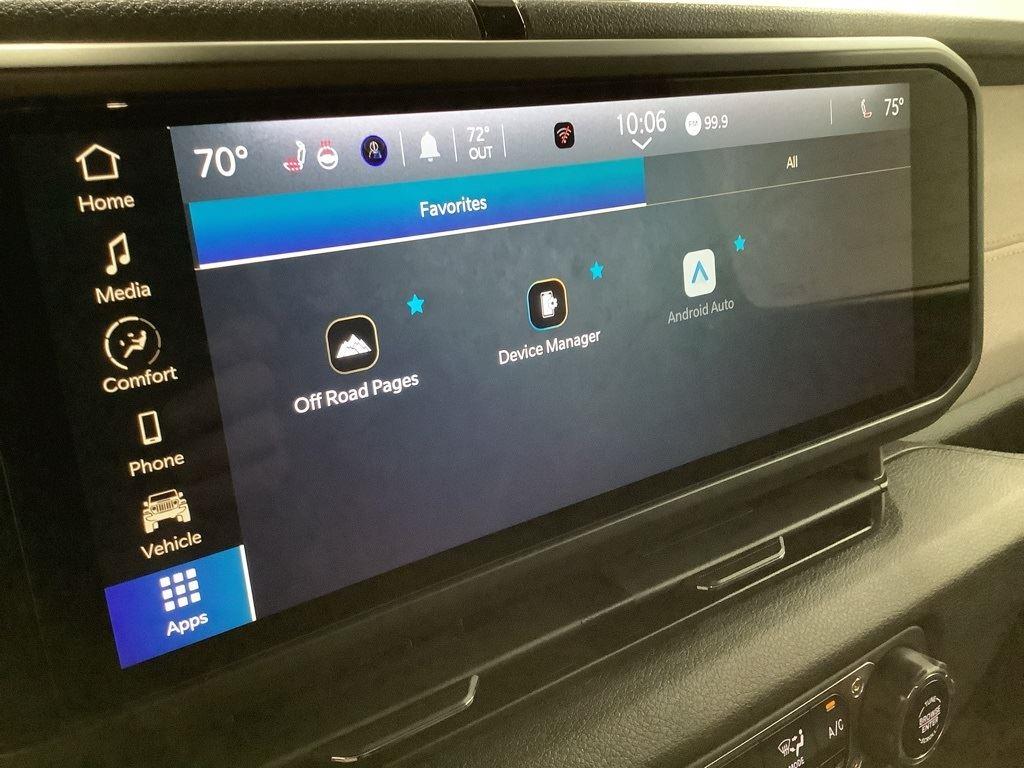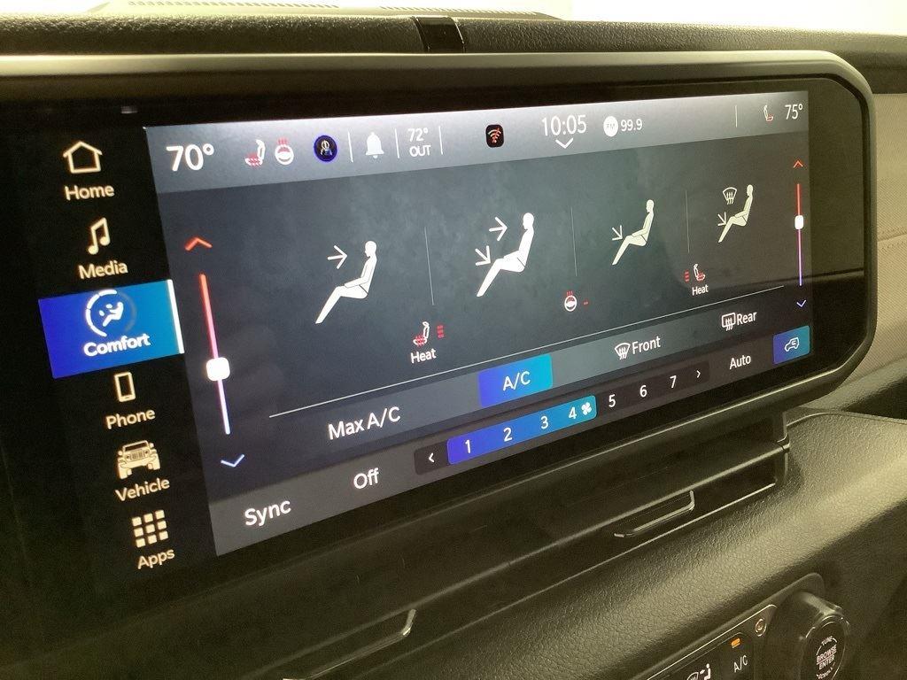 3 inch Suspension Lift, 17 inch Black Off-Road Wheels, 35 inch Premium All-Terrain Tires, Fox Adventure Shocks, Black Wheel to Wheel Side Step, Stamped Steel Hood with Vent Inserts, Rocky Ridge Stitched Headrests, Custom Stitched Leather Seat Covers, Rocky Ridge Stubby Bumper with Body Color Center Insert, 20 inch Lightbar, Rocky Ridge Exterior Badging