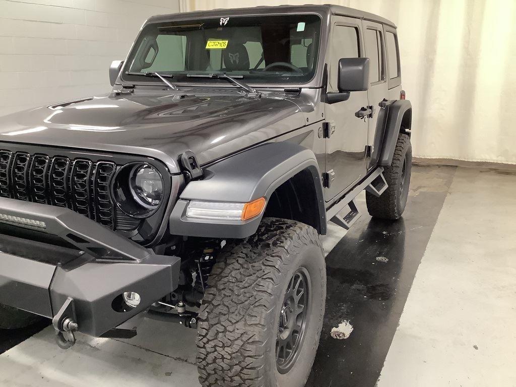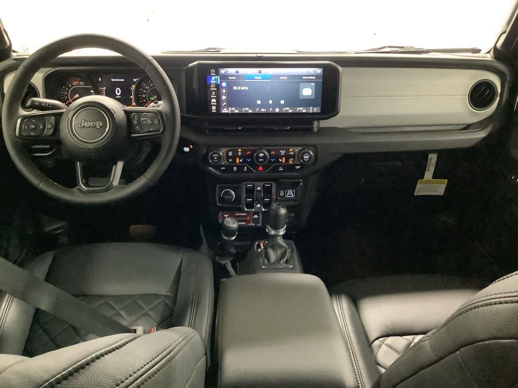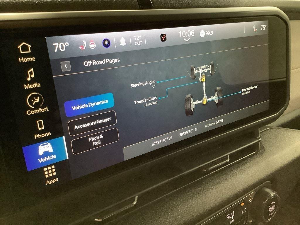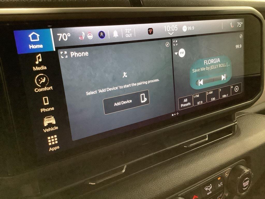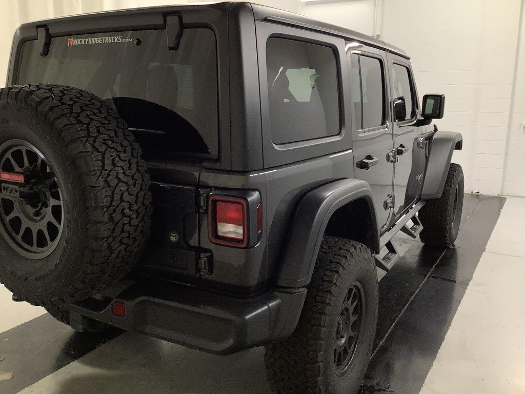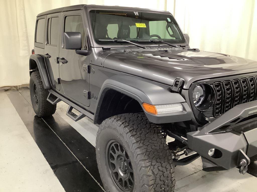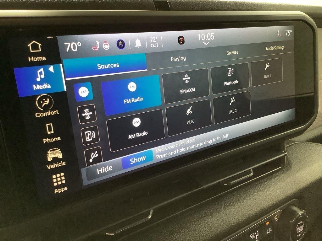 3 inch Suspension Lift, 17 inch Black Off-Road Wheels, 35 inch Premium All-Terrain Tires, Fox Adventure Shocks, Black Wheel to Wheel Side Step, Stamped Steel Hood with Vent Inserts, Rocky Ridge Stitched Headrests, Custom Stitched Leather Seat Covers, Rocky Ridge Stubby Bumper with Body Color Center Insert, 20 inch Lightbar, Rocky Ridge Exterior Badging