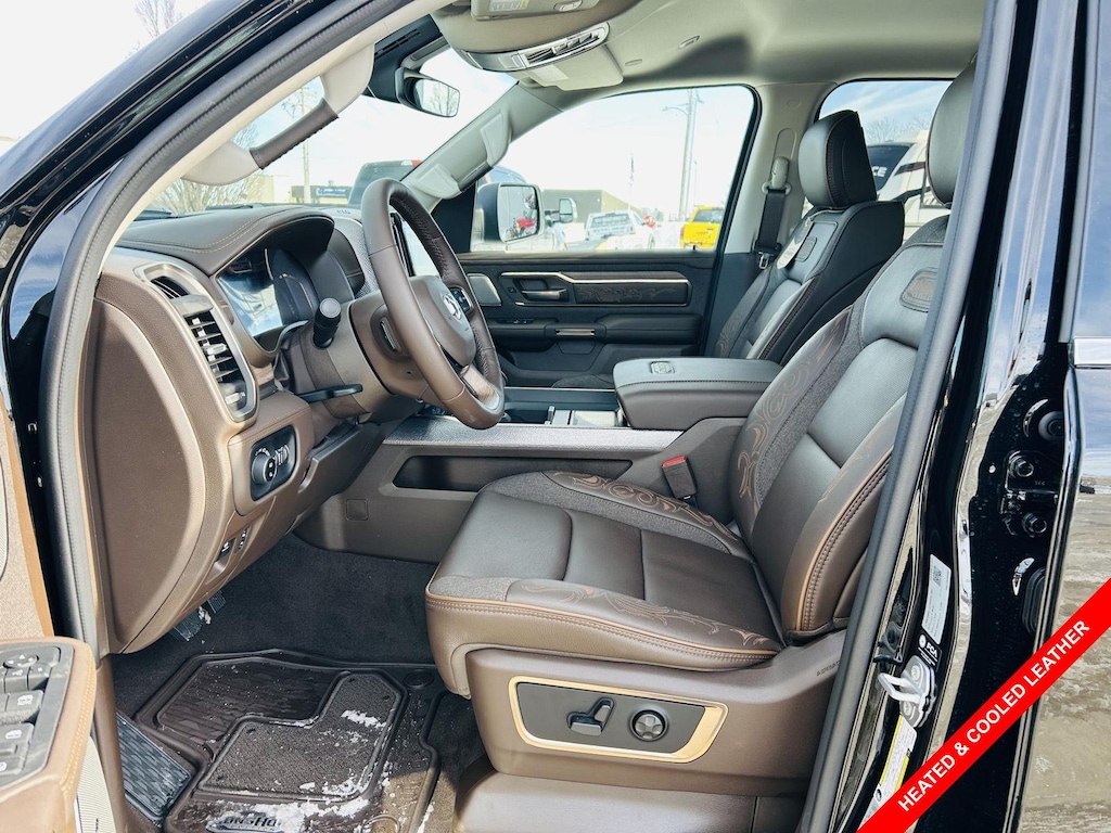 ENGINE: 5.7L V8 HEMI MDS VVT ETORQUE, TRANSMISSION: 8-SPEED AUTOMATIC (8HP75), QUICK ORDER PACKAGE 27K LONGHORN, WHEELS: 20 X 9 PREMIUM PAINT/POLISHED, TIRES: 275/55R20 OWL ALL SEASON, DIAMOND BLACK CRYSTAL PEARLCOAT, BISON BROWN, PREMIUM FILIGREE LEATHER SEATS, MYFLEXCARE SERVICE PLAN, TRAILER BRAKE CONTROL, E-LOCKER REAR AXLE, FRONT LICENSE PLATE BRACKET