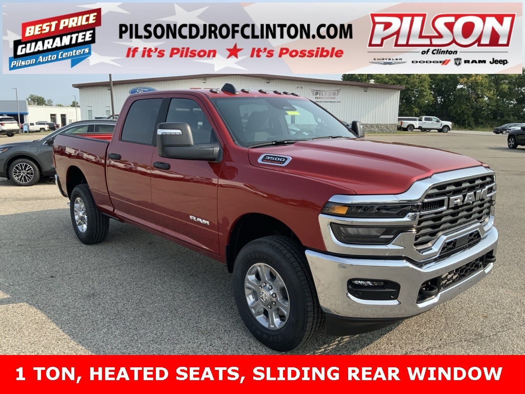$4,525 off MSRP! 2026 Ram 3500 Big Horn 6.4L V8 8-Speed Automatic Molten Red Pearlcoat 115V Auxiliary Front Power Outlet, 2nd Row In Floor Storage Bins, 400W Inverter, 4G LTE Wi-Fi Hot Spot, Active Lane Management System, Air Conditioning, Apple CarPlay/Android Auto, Blind Spot & Cross Path Detection, Drowsy Driver Detection, Heated door mirror, Heated Seats, Heated Steering Wheel, Integrated Voice Command w/Bluetooth, LED Tail Lamps, Low tire pressure warning, MyFlexCare Service Plan, ParkView Rear Back-Up Camera, Power 2-Way Driver Lumbar Adjust, Power Adjust 8-Way Driver Seat, Power door mirrors, Rain Sensitive Windshield Wipers, Rear window defroster, Red Tail Lamp Bezels, Remote keyless entry, Remote Start, SiriusXM Radio Service. Other incentives may apply. See Dealer for details. Eligibility subject to Manufacturer Guidelines.$1000 - 2026 National Bonus Cash . Exp. 11/03/2025